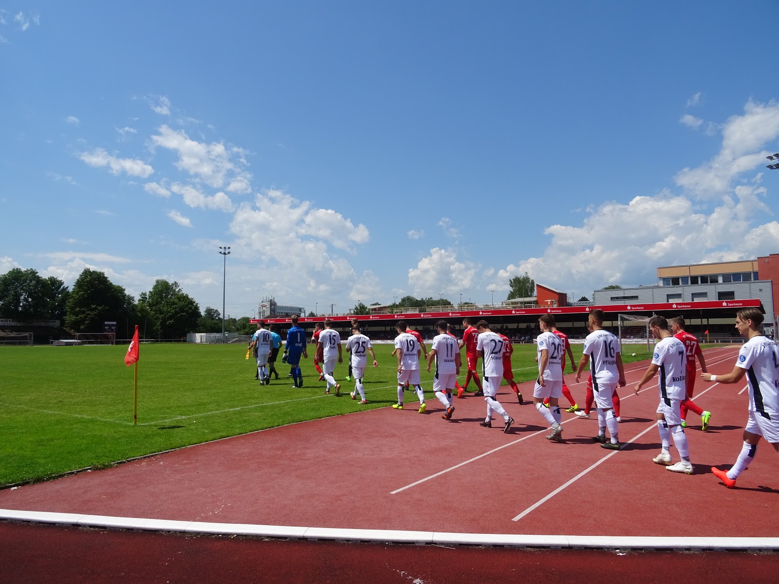 Dort empfängt der TSV 1860 Rosenheim in der 1. Runde der Regionalliga Bayern den VfR Garching. Geht man nach der Abschlusstabelle der Vorsaison, sind die Gäste favorisieren. Und es sind auch die Garchinger, die nach 16 Minuten mit 1:0 in Führung gehen. Philipp und ich testen in der Zwischenzeit mit dem Flötzinger Bräu ein weiteres Rosenheimer Bier.