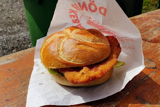 Ich gelange über den Gästeeingang auf den Sportplatz - und komme daher gleich bei der für die Wacker-Fans aufgebauten Stahlrohrtribüne vorbei. Diese Tribüne ist heute wichtig, da das Platzangebot am engen Natterer Sportplatz äußerst knapp ist. Nach einer Stärkung betrete auch ich den Rasen und beobachte das Match unmittelbar neben der Outlinie. Natters nimmt in dem ausgeglichenen Spiel das 1.0 in die Pause mit.