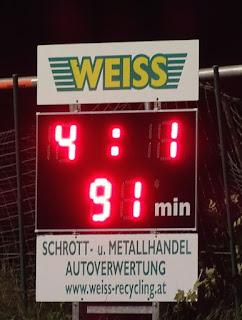 Da ein Sieg gegen einen Verein aus der Gegend besonders gut tut, wird am Feld noch würdig gefeiert. Wir verlassen St. Koloman, um nicht in Monza, sondern in Mondsee den wartenden Kollegen Andi wieder aufzulesen. Da sich das offensichtlich bis zu Radio Salzburg herumgesprochen hat, spielt man in der Alten Liebe passenderweise Peter Orloffs' Immer Wenn ich Stosy seh!