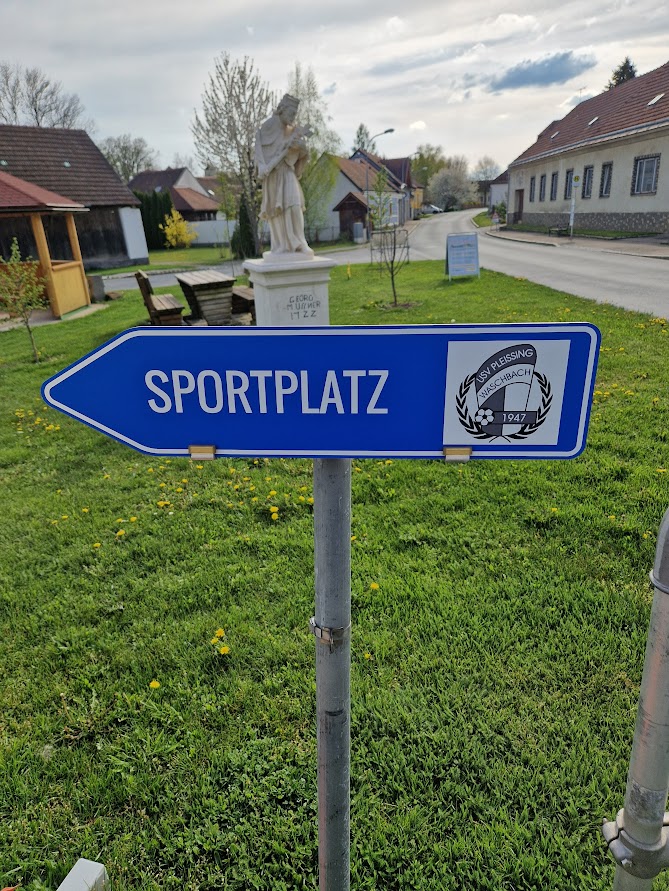 Nach der Kulturrunde geht es zum idyllisch gelegenen Sportplatz nach Pleissing, der sich heute ordentlich füllen sollte. Die offiziell angegebenen Besucherzahl von 80 ist viel zu niedrig angesetzt. Es werden wohl deren 200 sein. Als einer davon meine Kamera erblickt, erschrickt er: "Hui, D'zeitung is a do!"